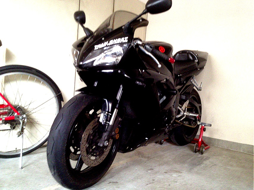 部屋に帰って、ちょっと前に琵琶湖までブラックバスを食べに行って以来また放置気味のR1を掃除する。