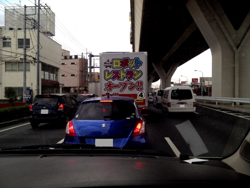 途中怪しいBGMを大音量で流しつつ、いかがわしいデーハーなロボットレストランのトラックが2台連なって走っていたりしつつ、無事OKRに2号機を受け渡します。