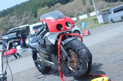 朝イチ8時からの走行は、前回のプライド4開幕戦のハーフウェットのセッティングのまま走ってみるコトにして、走り終わってみるとフロントがフワフワしてコーナー進入が心許ない。