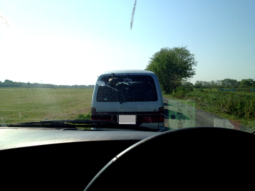今日の目的は『昨日OKR社長にゴニョゴニョしてもらたフロントサスの調子を見る』ってコトで、かなりワクワクしつつ午前8時少し前に現着してみると、桶スポ沿いの砂利道のラジコンコースの辺りまでトランポの列が出来ていた。