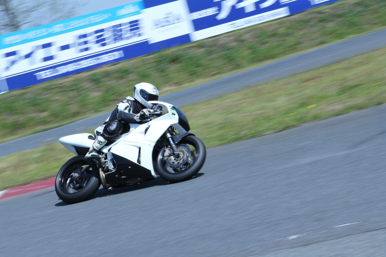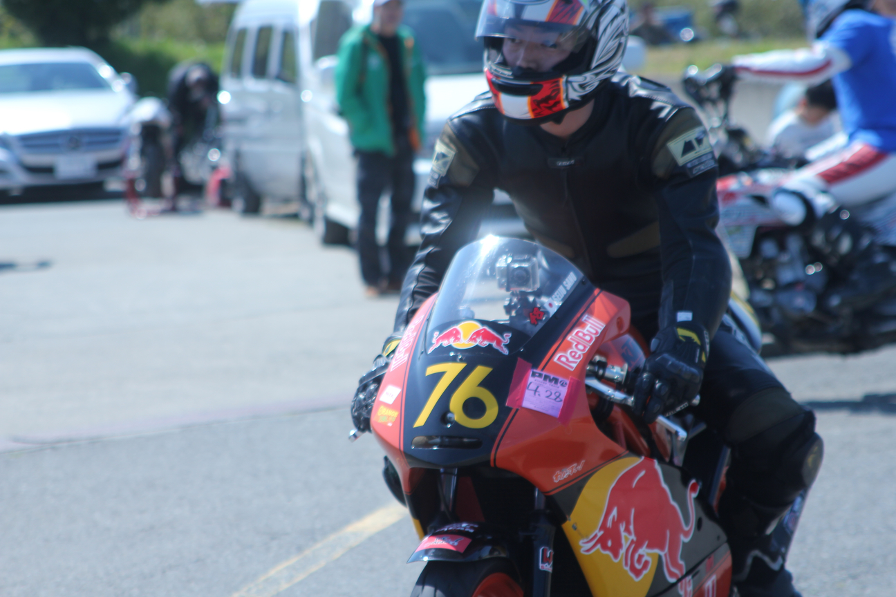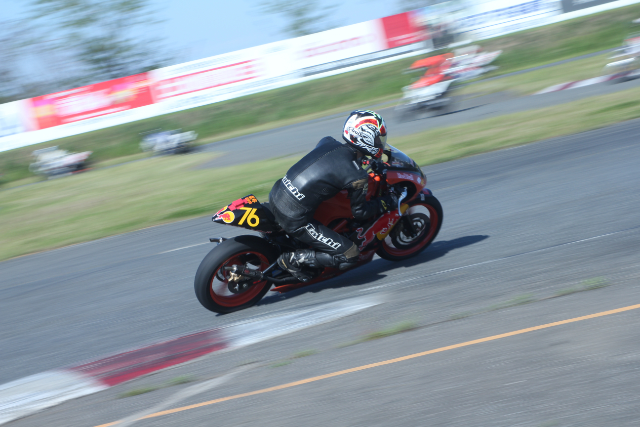 で、普段僕は走ってるバイクばかり撮っているんですけども、みっち〜くんがサーキットの雰囲気とかを撮ってるのを見てて、あぁいうのも撮れたら良いなって思っていろいろ撮ってみましたけども、あとから見て面白い写真はあんまりなかった(笑)