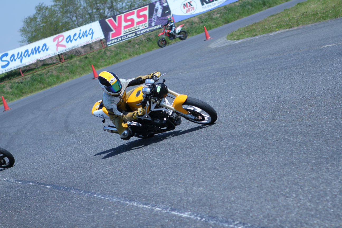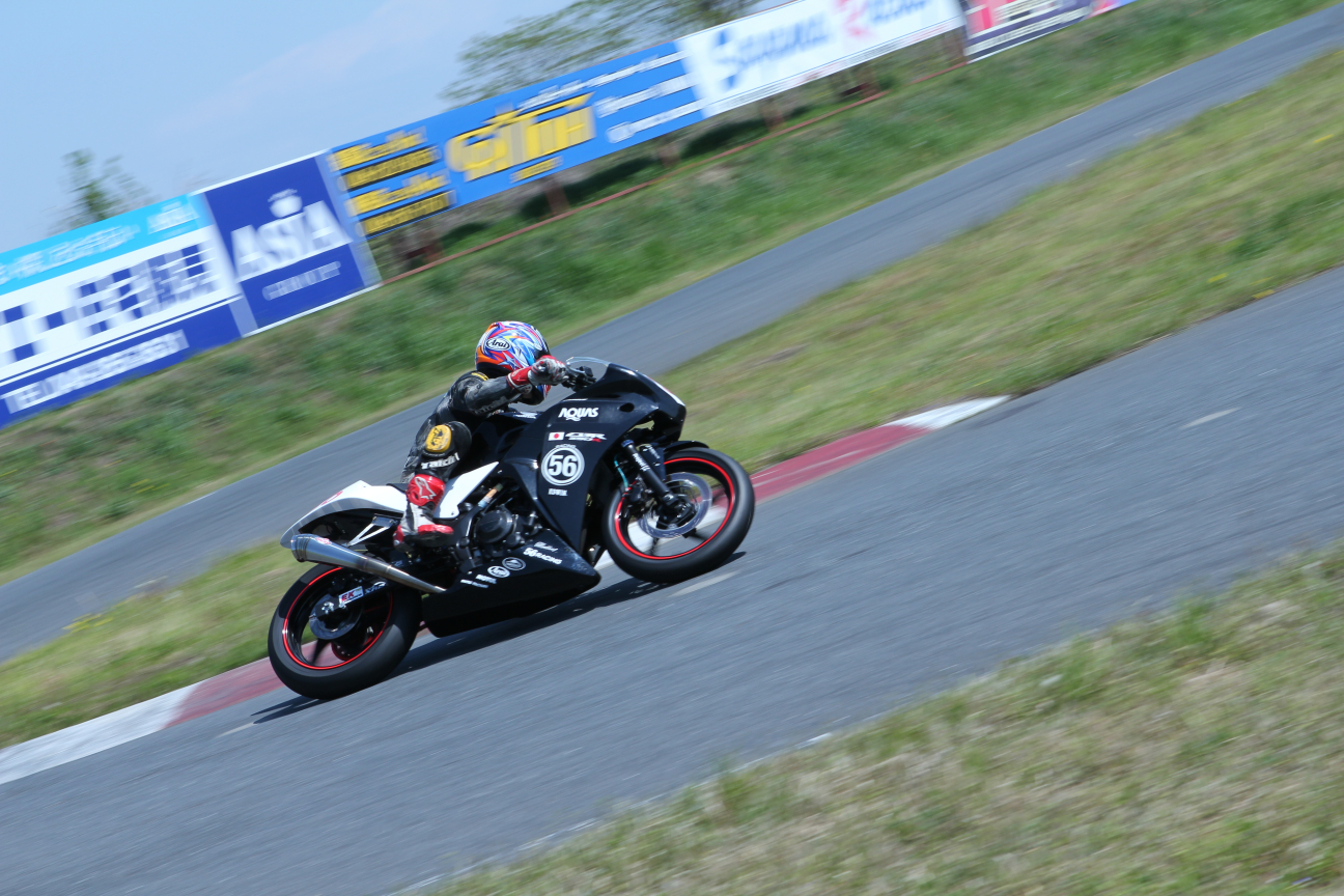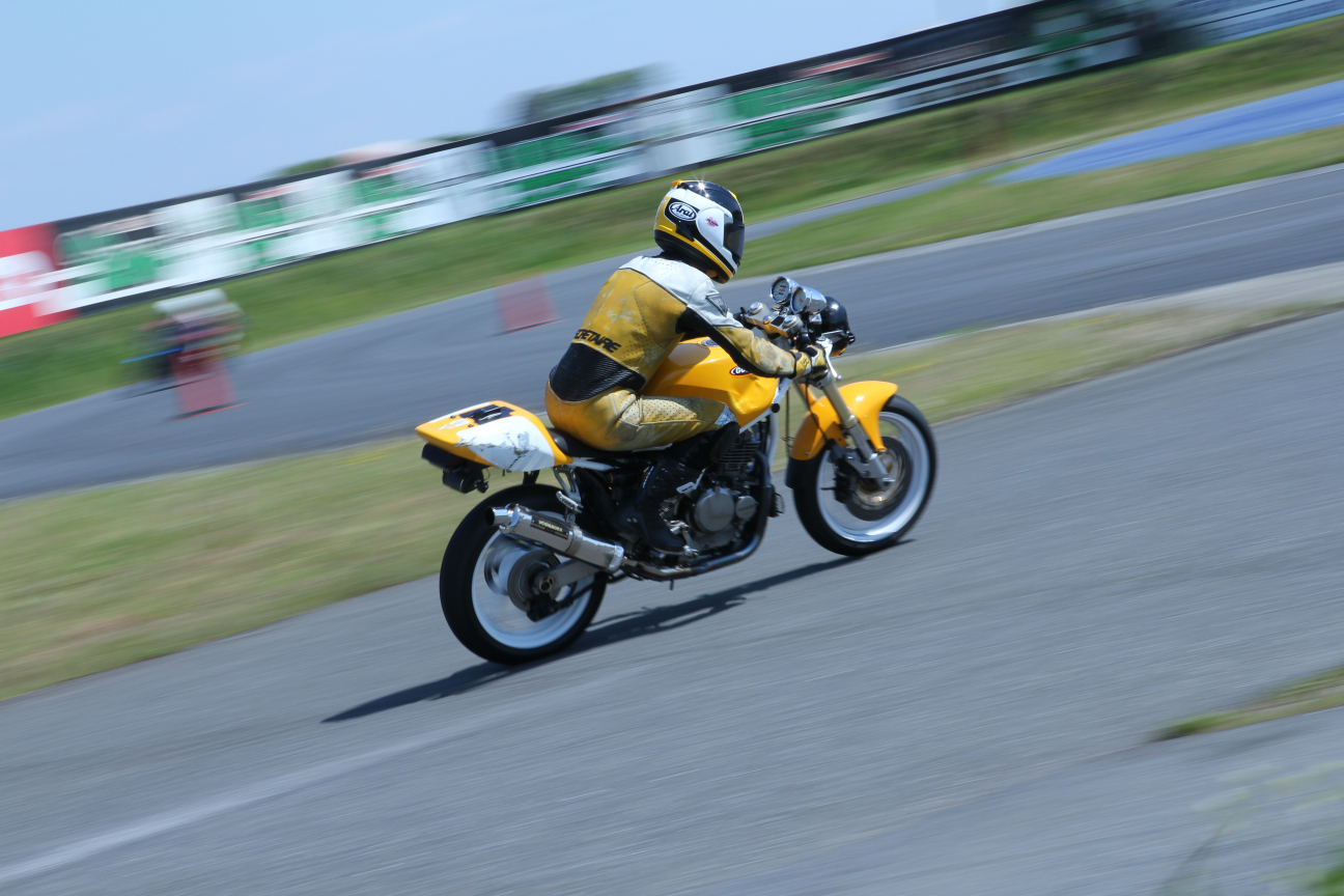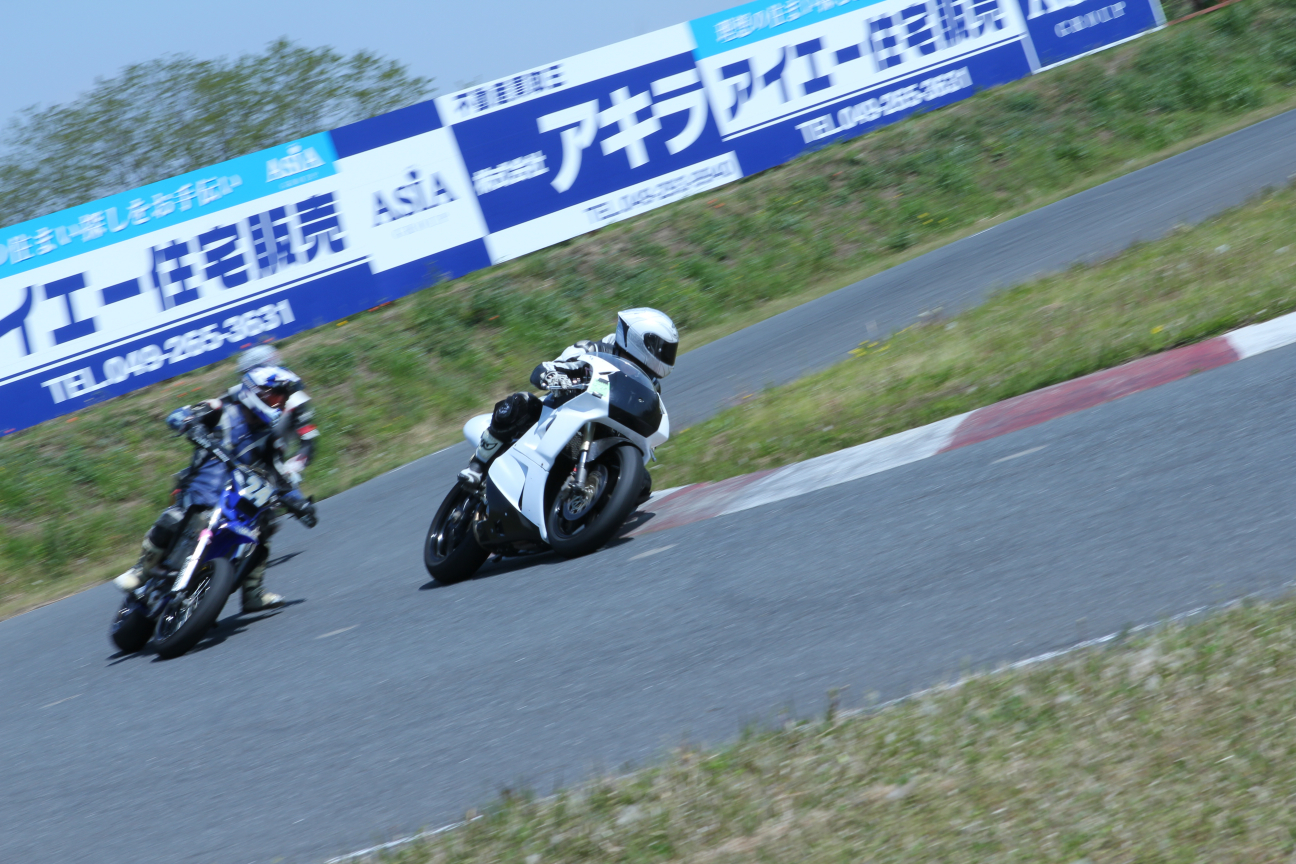 で、普段僕は走ってるバイクばかり撮っているんですけども、みっち〜くんがサーキットの雰囲気とかを撮ってるのを見てて、あぁいうのも撮れたら良いなって思っていろいろ撮ってみましたけども、あとから見て面白い写真はあんまりなかった(笑)