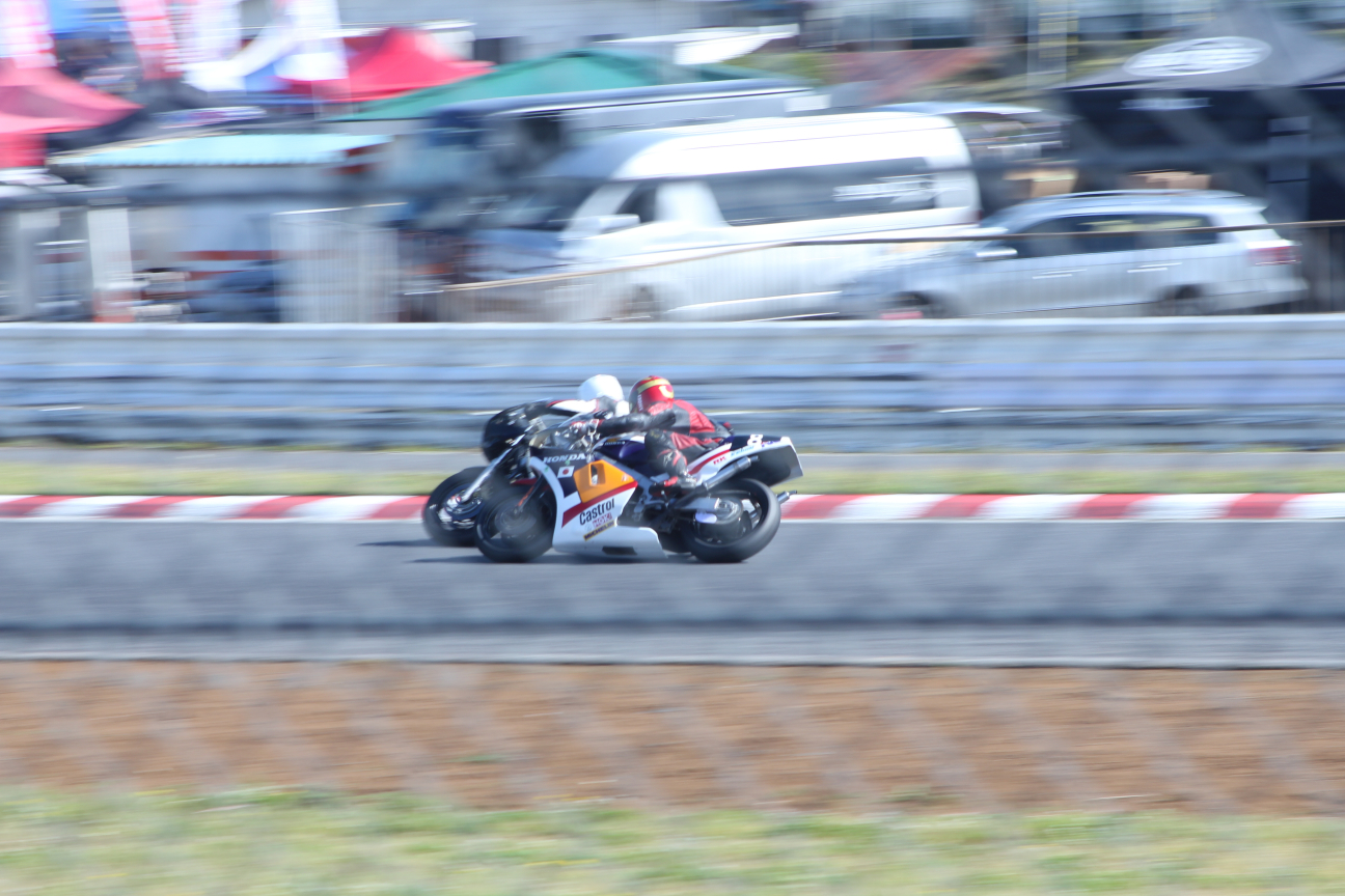 カメラの練習が目的だったんですけども、サーキットの匂いとテンションの高いアナウンスと、右も左もバイクバイクバイクで、その上テイストは車種がまたイカす。
