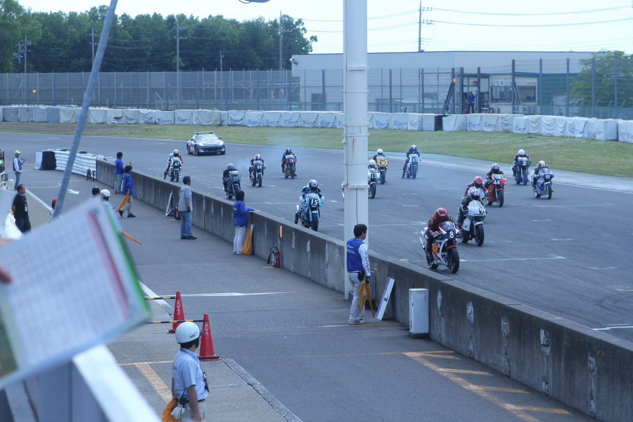 ツクバはコーススタッフさんがしっかりしてるので黄旗と緑旗がしっかり出される事は気がついてたんですが、あれだ・・・朝日がまぶしくて見えなかったんだ・・・そんな気がする。