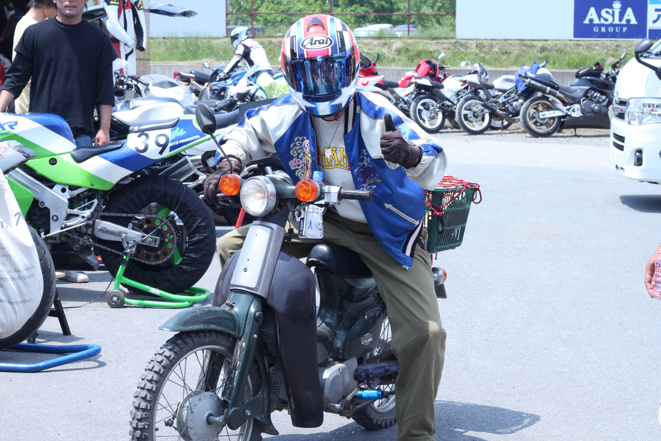 なぜ私が乗らなかったのかと言えば、僕とタラヲさんは同い年のチームメイツである以前に猛烈な負けず嫌いなので、初めて乗るバイクでタラヲさんのタイムを抜こうとムキになって走る可能性が多々あり、その結果転倒してタラヲさんが決勝に出場出来ないというような可能性が考えられたため、アルプスさんに白羽の矢が立ったと、そんな次第なのですf(^_^;)