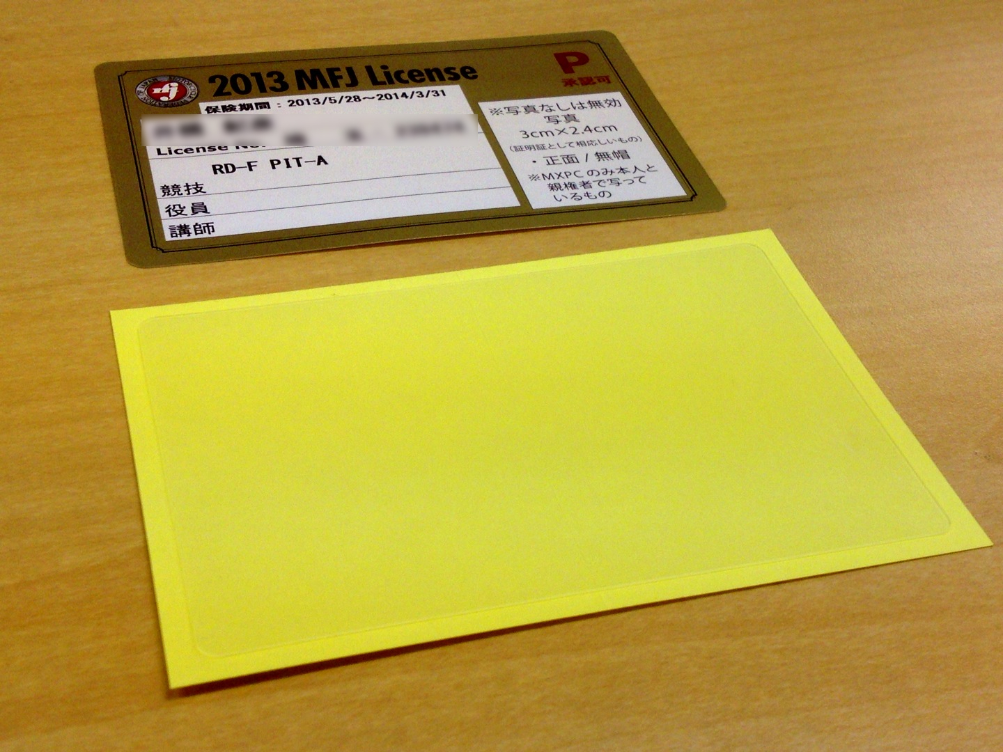 ライセンスは去年と同じように、書類から剥がして写真を貼ってその上から透明シールを貼るってヤツなんですけども、去年よりは透明シールが厚くて丈夫そうなのに変わってた。