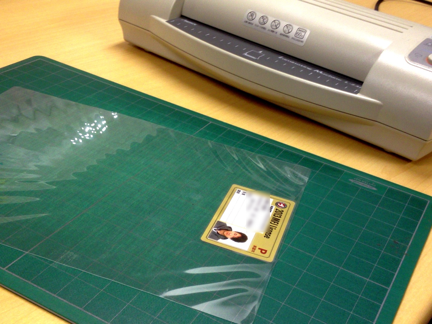 透明シールは着いて来たヤツで良いかな…とも思ったんですけども、合わせて見たら横幅はクリアランスゼロのピッチピチなのだけど、縦が少し大きくて、ベタベタしたりすぐ剥がれたりしたら嫌だなぁ…と思ったので、やっぱり職場に転がってたラーミネーターでラミネート。