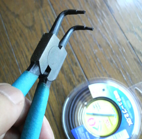 軸側のスナップリングを外すヤツなんですけども、握ると開くし先は曲がってるし。条件にピッタリ。