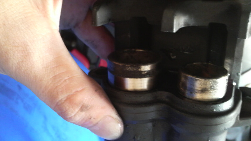 主にブレーキ回りのメンテとチェーン回り、それからオイル回りの漏れの再チェックって感じだったんですけども、キャリパーのピストンの揉み出しをする時って押し込んで出してっていうのをする前に歯ブラシでゴシゴシするじゃないですか。