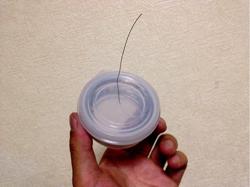 僕、針金とか糸なんかもそうなんですけども、ある程度の太さ以下のヤツをそのまま使ってると十中八九途中で絡まってどうにもならなくしてしまうので、ティッシュみたいに使う分だけスイーっと出て来るようにタッパーみたいなのに移すんですよね。