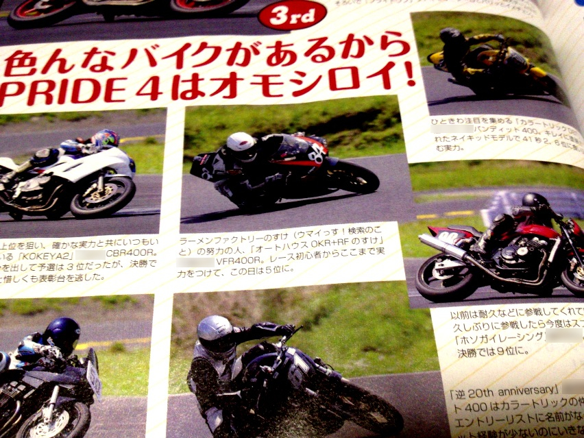 それに、その頃にはまったくもって接点がなかった酒とも姉さんやガムチョネダッチさんが1ページまるまるガツンと載ってるのが凄く嬉しかったり、ガムチョまさゆきさんやタノッチさん、ASN弟さんやホソガイレーシングさん達と同じページで紹介されていたり、その紹介のされ方が『努力の人』だったり。