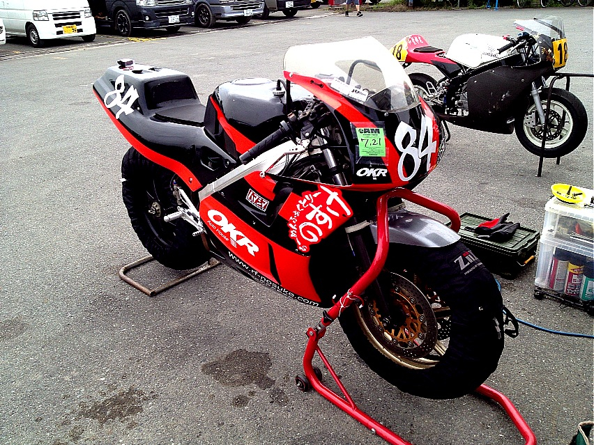 そんで今日の桶スポの大型バイククラスは午前3本あったんですけども、2本走った時点で目的は達成していたのと、作りの粗いカウルが原因でちょっとした問題があったので、午前2本で切り上げるコトにする。
