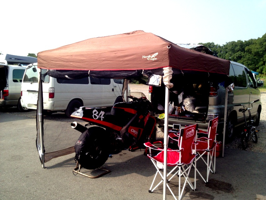 VFR400R(NC30)でたまにミニサーキット走行。C24セレナ(トランポ)と時々カメラのお話し。