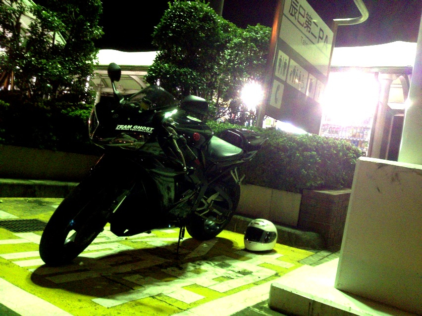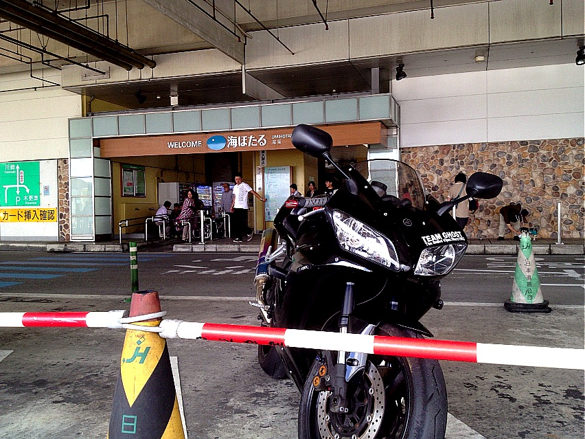 車は気の毒なくらい込んでて駐車場に入るまで何十分も掛かってる様子だったけど、バイクは全然いなくて、別レーンからスイスイーっと駐車場にイン。
