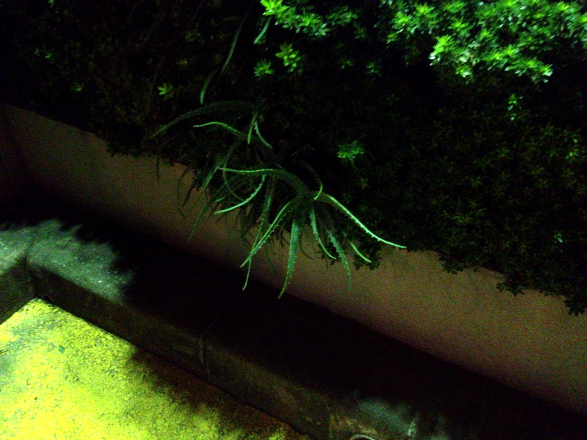 全然関係ないけど、辰巳第二PAの2輪駐車スペースに大胆にアロエが生えていた。