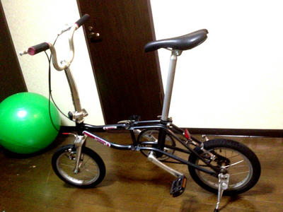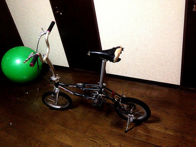 一緒にペダルも出て来たのだけど…それはとりあえず着いてたってヤツなので良いとして、今サーキットの移動用に使ってる折りたたみのちゃりんこは、このブログでミニヴェロを盗まれたというのを書いたのを兄貴が見て『とりあえずコレでも乗っておけ♪』とわざわざ千葉からさいたままで持って来てくれたヤツ。