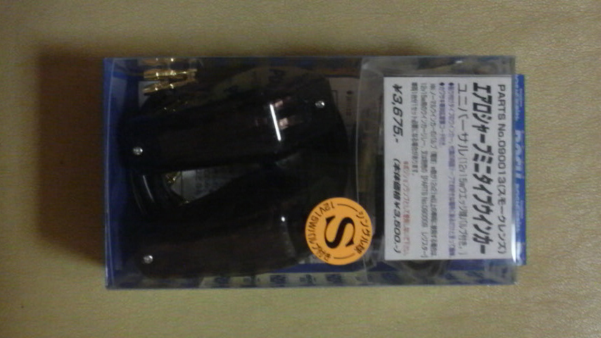 ノーマルのウィンカーはカウルから張り出しててサーキットでテーピングも面倒だし、転けた時にボキっとなるのも嫌なのでリアはPOSHの貼付けタイプにしてフロントはヘッドライトのユニットの中にあるポジションランプをオレンジバルブでウィンカーにしてたんですけども、今度はフロントもPOSHの貼付けタイプのを買って来てくっつけました。