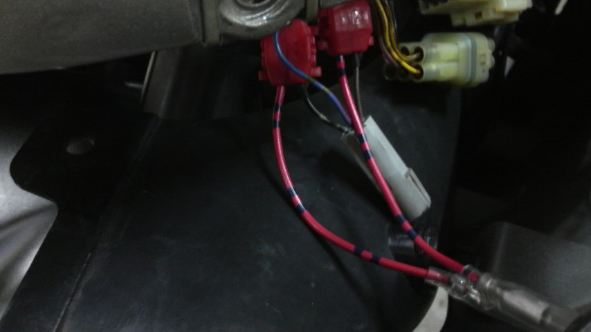 本当はポジションランプをウィンカーにしてた方がライトのテーピングだけで済むので良いんですけども、配線を切った貼ったしてたら今回車検でノーマルに戻すのがとにかく面倒だったので、配線をノーマルのままギボシに配線を抜くようにしてみましたよ。