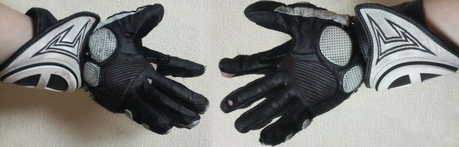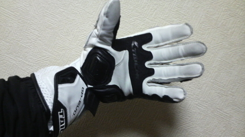 これを買ったのは2年前で、桶川ですっ飛んだ時もトミンでザザーッと行った時も上尾のライコに入ろうとした時にヤンキーワゴンに幅寄せされてすっ転ばされた時も、他にもあの時もあの時もあの時もあの時もあの時も!何度も僕の手を護ってくれたもんですが、掌側の革が薄くなって限界を迎えてしまった様子。