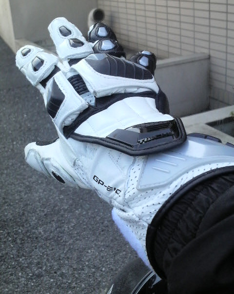 この2つのメーカーではだいぶ迷ったんですけど、HYODのSサイズは着けてしまえば激ピッタリフィットだったんですけども、手首の絞りがキツくて着けるまでが大変だったんで、街乗りのコトを考えるとどうかな?ってコトで、結局RS TaichiのGP-EVOにしました。
