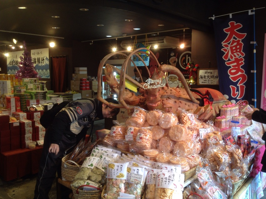 その後も心臓に『もう少し向こうにエビの頭を被った巨大なキティちゃんがあるよ♪』とか、『あそこの廻る寿司って書いてあるお店は流しソーメンの雨樋みたいなヤツで寿司をコロコロ転がして来るんだよ♪廻るって意味が違うかんね!』とかウソの限りを吹き込みつつ、面白そうなトコをグルグル回って決めた海の幸なお店に突入!