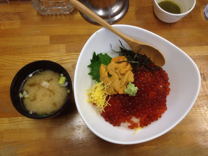 店に入っても写真とかは一切ないので何を食べたもんか迷うトコなのだけど…海と言えばウニ。そしてウニと言えばイクラ。