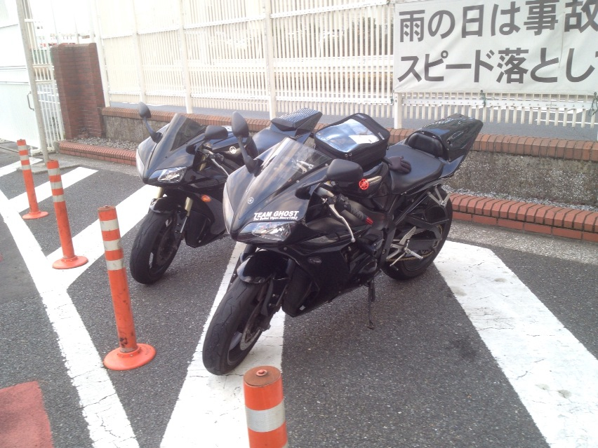 テラサワくんのR1が見切れちゃってるんですけども、2台のR1と2台のZX10R。