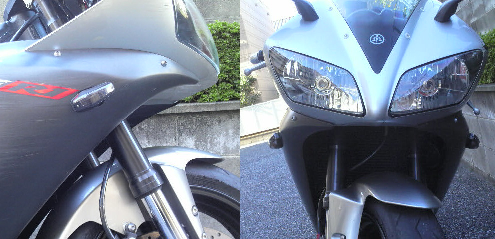 横から見た感じで気に入ったトコに着けたんですけどね、他の年式は知らないですけども5PWのR1のこの部分ってデザイン的にかなり曲面になってんですよね。