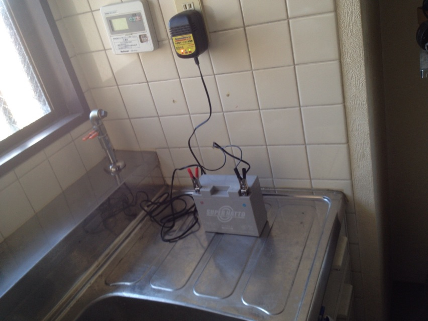 ってな訳で充電できるのも確認できたし、車検整備する時に邪魔なのでもう1度ソケットを取り外しておきつつバッテリーの端子を外したついでにバッテリーも取り外して部屋で充電。