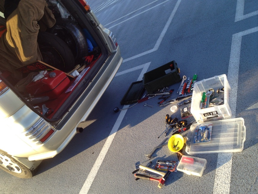 買って来たそばからニトリの屋上駐車場で工具を広げて、『あぁでもない…こうでもない…』と色々やってたら収拾つかなくなってまいった。