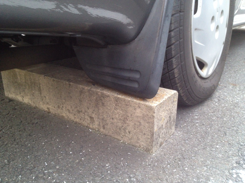 あ、このタイヤ止めのブロックを削っちゃえば良いのか。逆に(笑)