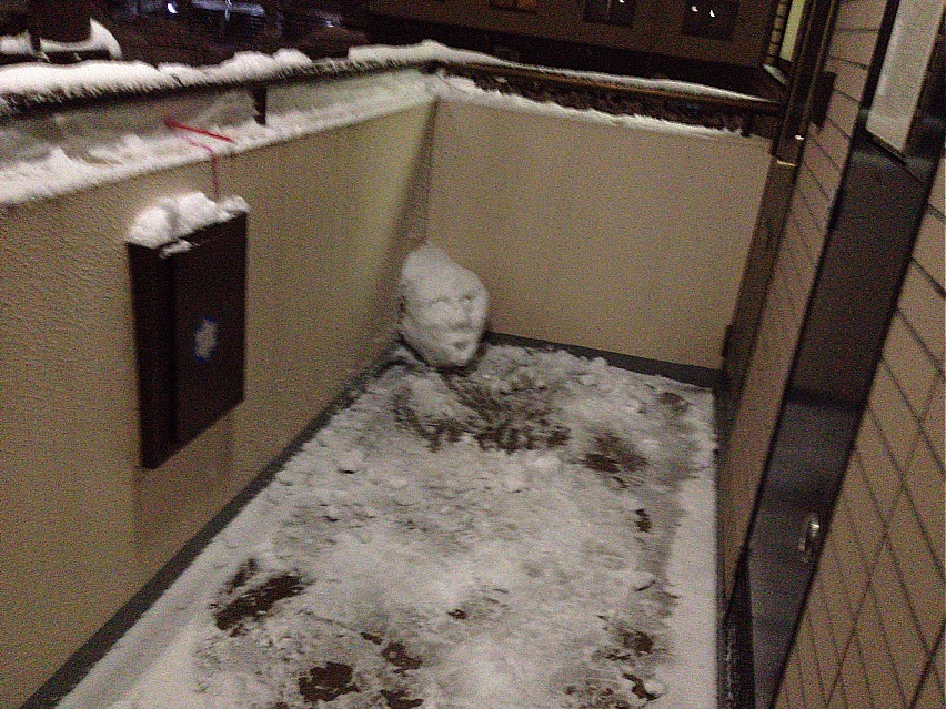 そんでグシグシサクサクと雪を踏みしめながら帰ってきて、マンションの階段を登って部屋の前。