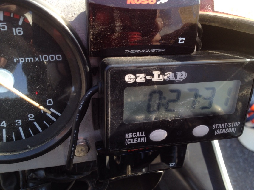 すると今日のベストは更新できたものの、19ヶ月前に初めてVFRを持って行った時よりコンマ1落ちの27秒3とか。