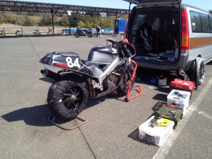 VFR400R(NC30)でたまにミニサーキット走行。C24セレナ(トランポ)と時々カメラのお話し。