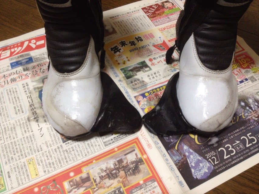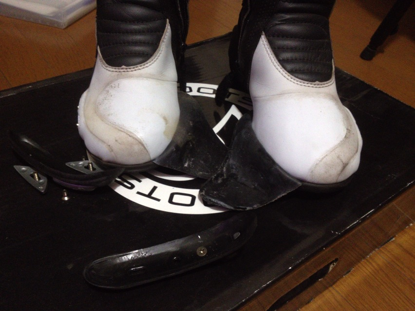 ベリックのブーツの爪先はシフトペダルが当たる部分にゴムのプロテクションみたいなのが貼ってあるので、ベリっと剥がす。