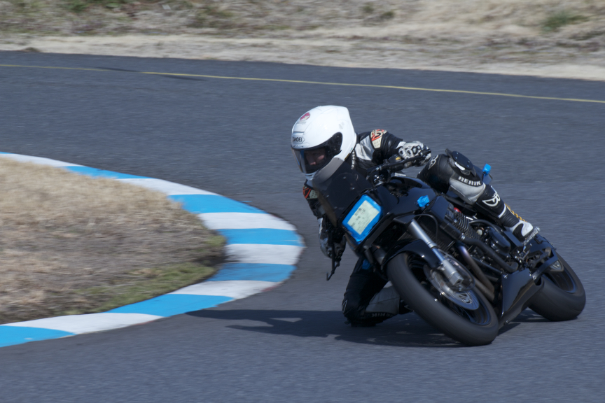 シート高とハンドルがイメージよりもずっと高くて、初め数周はギクシャクしてたんですけども、『人のバイクで絶対に転かしてはいかんです』っていう気持ちが、逆に丁寧な運転に繋がったみたいで、とても勉強になって良い経験をさせてもらいました。