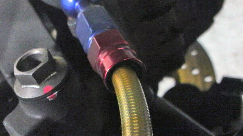 フロントの右なんですけども、バンジョー根元付近の保護ホースが変色してる!