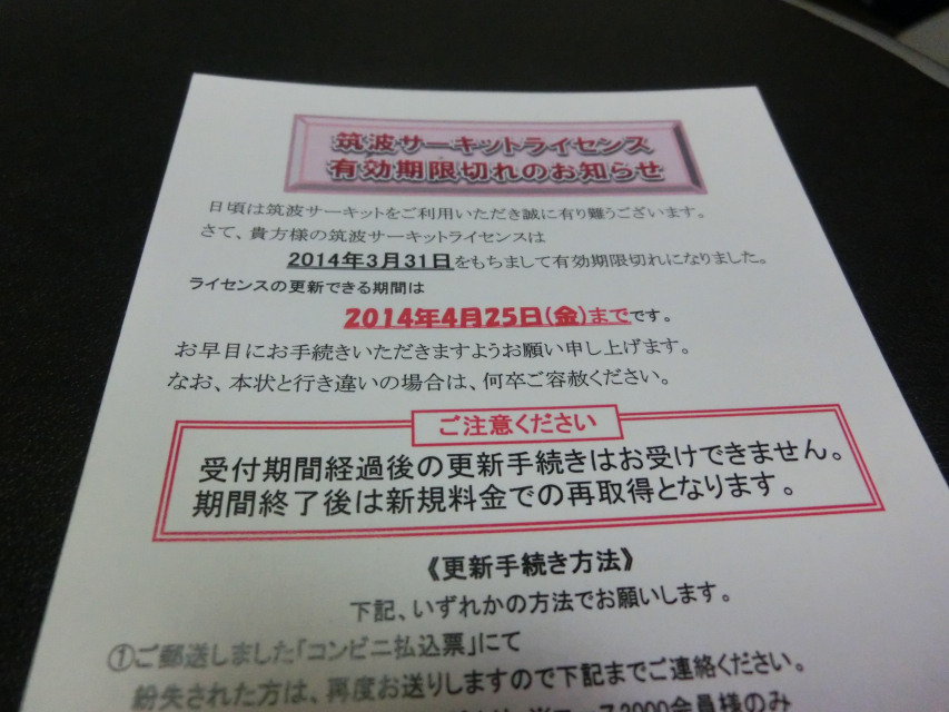 3月末でライセンス切れるのは把握してたんですけども、去年も結局1度も走らなかったし、今年も筑波のレースに出る予定はないので更新しなくて良いや…と思ってたんです。