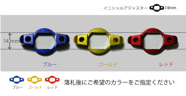 『イニシャルアジャスター 14mm』で掛かる商品を全部見てみたところ、即決1,300円のが赤/青/金のアルマイトで、他にも黒とガンメタのが出品されてましたけども、そっちは即決5,000円弱っていう感じで、アルマイトの質と直結している様子(笑)