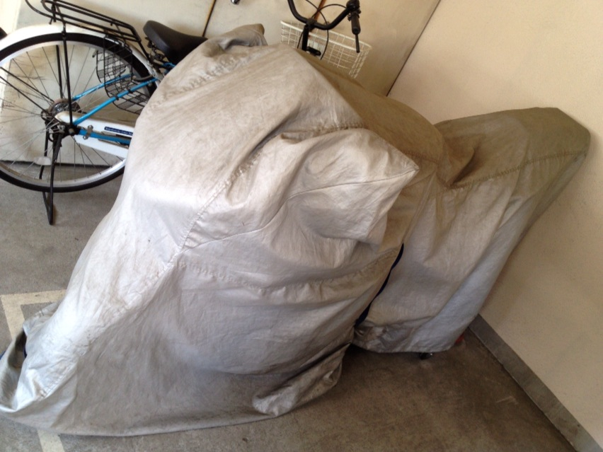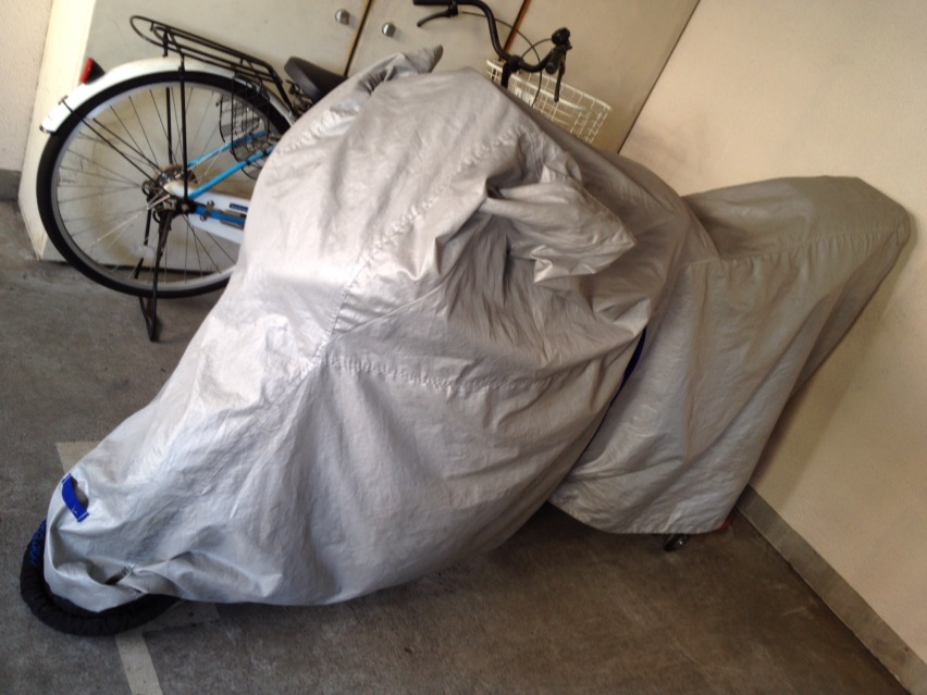 今日の関東はとても清々しい天気で、今日も今日とて何処かに走りに行ってしまいたいトコですけども、グッと堪えてシートを被せておく。
