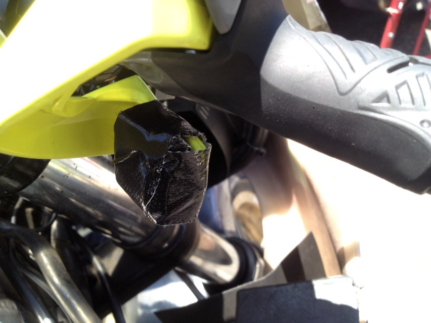 ちょっと判り辛いですけども、ウェスを小さく丸めてガムテで単二の電池みたいにして、縦に突っ込んでガムテでグルグル巻きにしてみた。