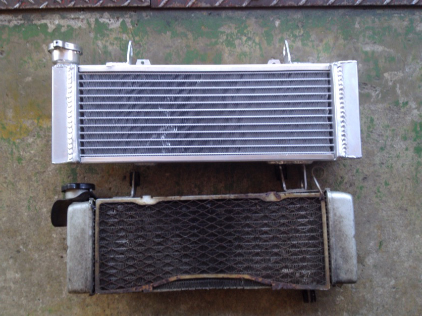 で、新旧ラジエターを並べてみます。