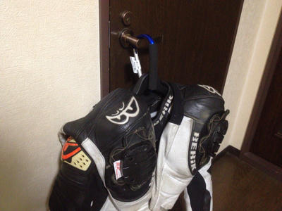 確かツナギ用の頑丈なのもあるはずなのだけど、そのうち見掛けたら買おうと思ってるうちに数年過ぎて、まだ売ってるのを見掛けないので普通のハンガーを使ってる。