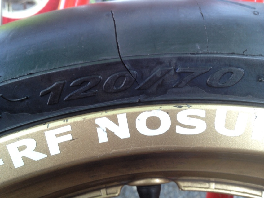 実際にはグリップやら耐久性にはまったく(かどうかは判らないけども)影響ないんですけども、気持ち的にはあまりよろしくないですよね。タイヤ割れてるとかf(^_^;)