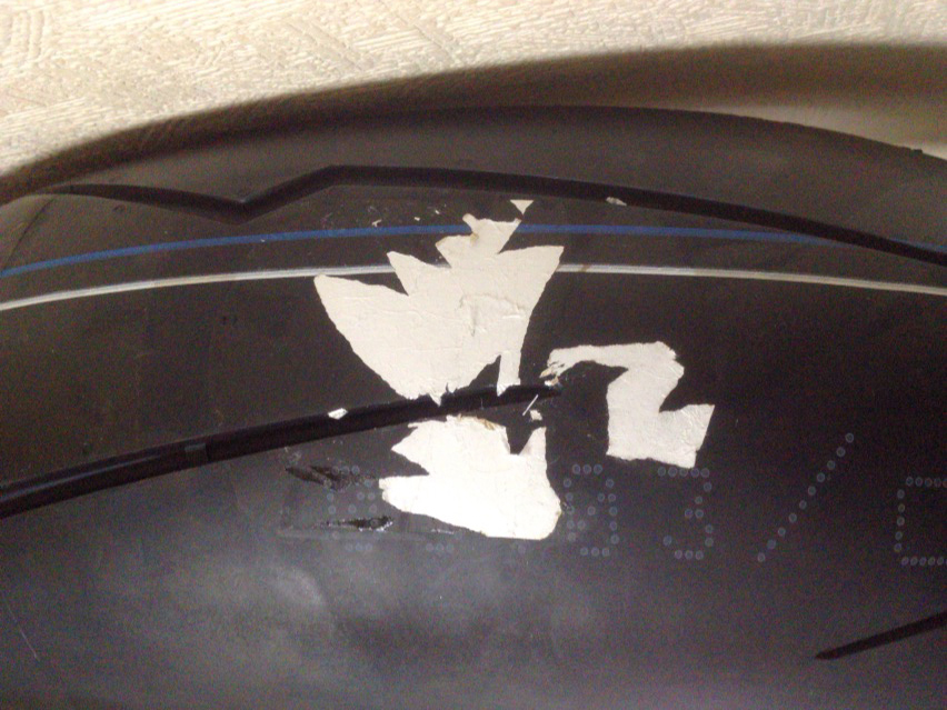 シールなんか業務用のホットガンとか熱湯を掛けて軽く擦れば一撃だと思うんですけども、相手がタイヤなのでそういう訳にもいかず、地味にコリコリと少しずつ剥がした。