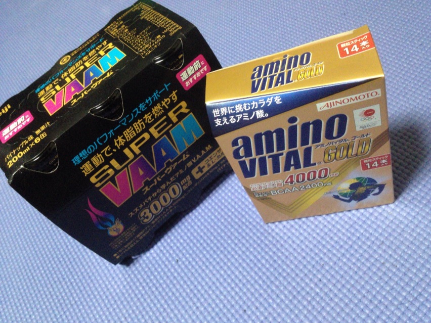 アミノバイタルは走る少し前に飲んでおくと全力でいられる時間が長い気がするし、スーパーヴァームは8割の力を長時間持続させるイメージを持ってる。