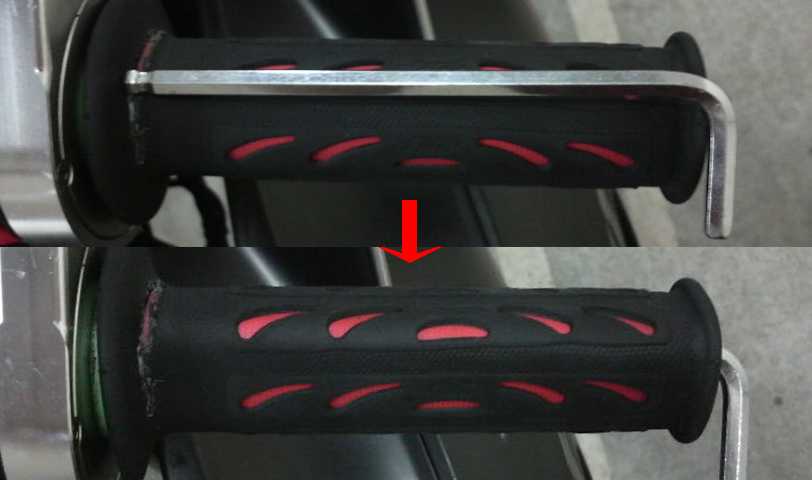 まずはグリップを外さないといかんので、6mmの六角レンチでバーエンドを外します。