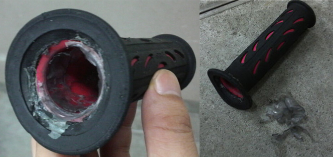 そうすると1周回って元の位置に戻るので、グリップボンドがスロットルから剥がされるっていう寸法ですな。