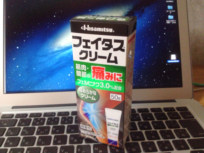 初め、以前R1でハイサイドでダッフんだ時にやじさんが教えてくれて調子よかったボルタレンを買おうと思ってたんですけども、今は痛み止め成分が多いのはこのフェイタスってヤツで、塗りづらいのが嫌じゃなければクリームが良い、と。