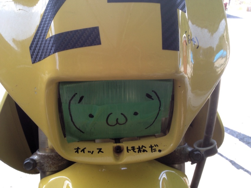 前と後ろは完全に遊んでるけども、タンクに描いたいたずら描きは、ちゃんと車体をホールドして走れていればすぐに消えてしまう位置に描いておいた、言わばテストだ。